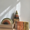 Ми обрали приглушені глибокі кольори, щоб діти зрозуміли красу та складність світу - він не обмежений яскравими зеленим, жовтим, синім та червоним. Відтінків у природі незліченна кількість, і ми намагаємося передавати цю красу через іграшки. Граючись з такими відтінками, ви можете асоціювати їх з різними природними явищами, квітами, фруктами та матеріалами, що розширить кругозір дитини.